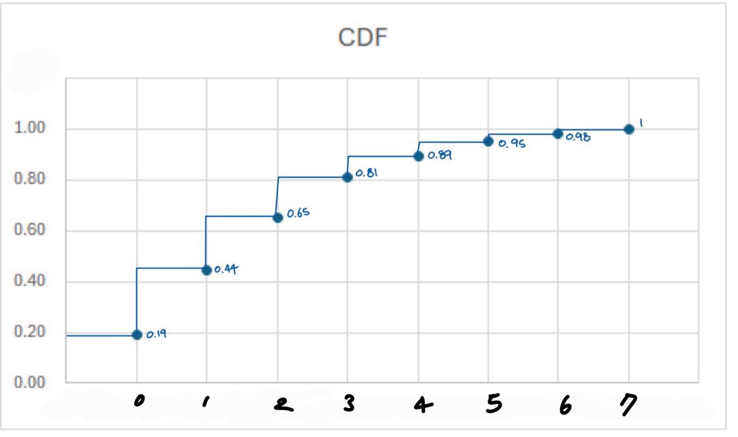 따라서 CDF를 다시 구해보면 다음과 같다.
