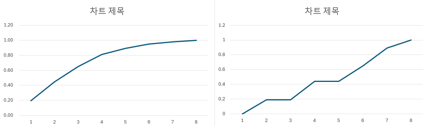 이제 CDF를 계산하면 왼쪽 그래프와 같다.