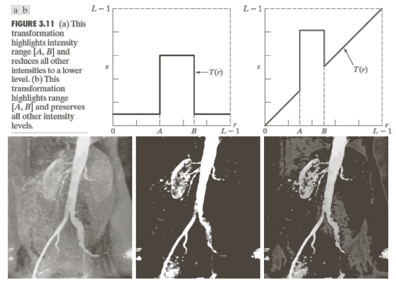 특정한 Pixel Value 영역을 기준으로 밝기값을 조절하는 영상 처리 기법이다.
