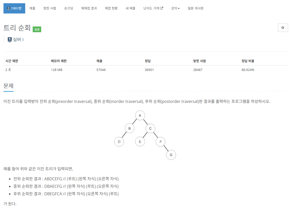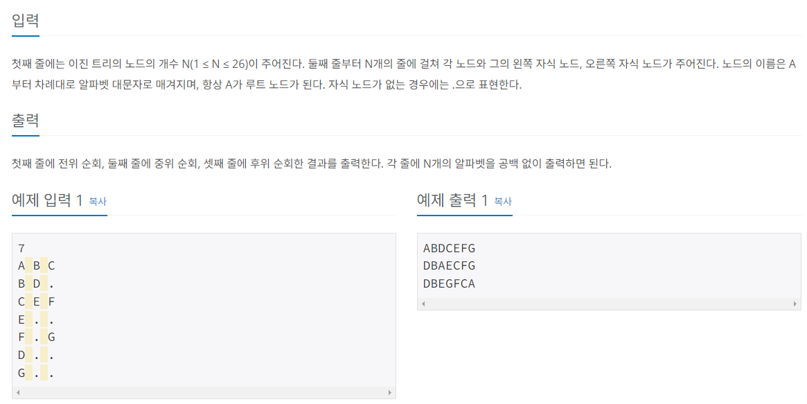 [ 트리 - 1991 ] 트리 순회(C++) 본문
