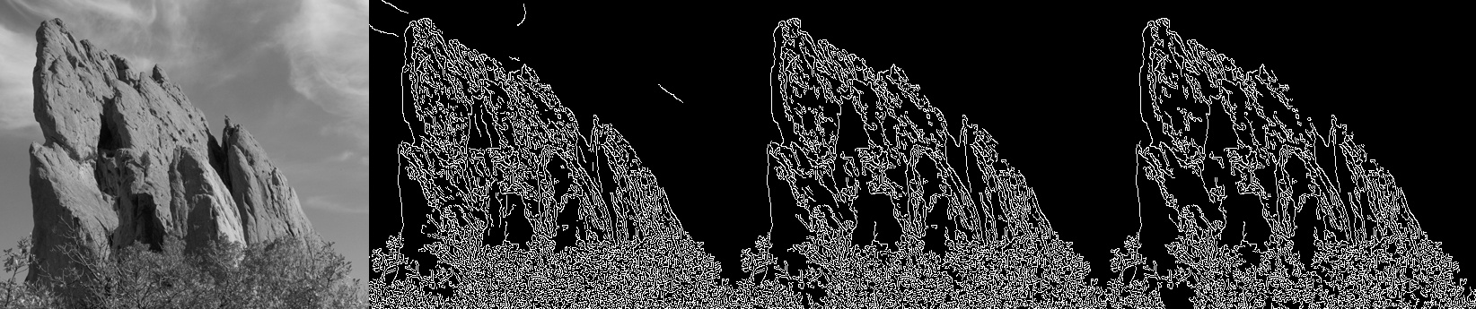 Max Threshold가 커지면 Edge라고 판단되는 기준이 더 엄격해진다. 따라서 바위 내부의 Edge들이 Max Threshold가 커지면서 점점 줄어드는 것을 확인할 수 있다.