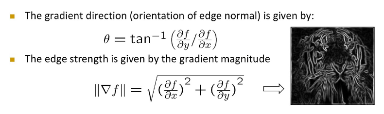 Sobel Filter를 이용하여 Convolution하면 위 결과와 같이 x,y 각 방향으로의 Edge를 추출할 수 있다. 이때, 각 방향에 대하여 Pixel의 Intensity 분포가 Filter의 반대 방향 즉, 왼쪽에서 오른쪽으로 커지는 Filter지만, 픽셀은 오른쪽에서 왼쪽으로 Intensity가 커지는 경우에도 높은 Response를 보이나 부호가 반대이다. 따라서 모든 Edge를 고려하기 위해 Convolution 과정에서 절댓값을 씌울 것이다.