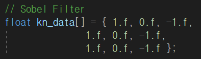 Sobel Filter는 위와 같이 구현되어 있다. Edge를 찾기 위해서는 Gradient를 구해야 하고 이는 Discrete한 Image의 경우 차분으로 대신한다고 공부하였다. 따라서 가로 혹은 세로를 기준으로 차분을 계산할 수 있도록 Filter가 구현되어 있다.