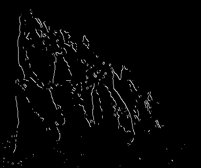 $T_{min} = 100, T_{max} = 200$으로 설정한 결과 오른쪽과 같이 Edge가 검출됨을 확인할 수 있다.