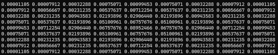 생성한 9x9 Gaussian Kernel은 위와 같다.