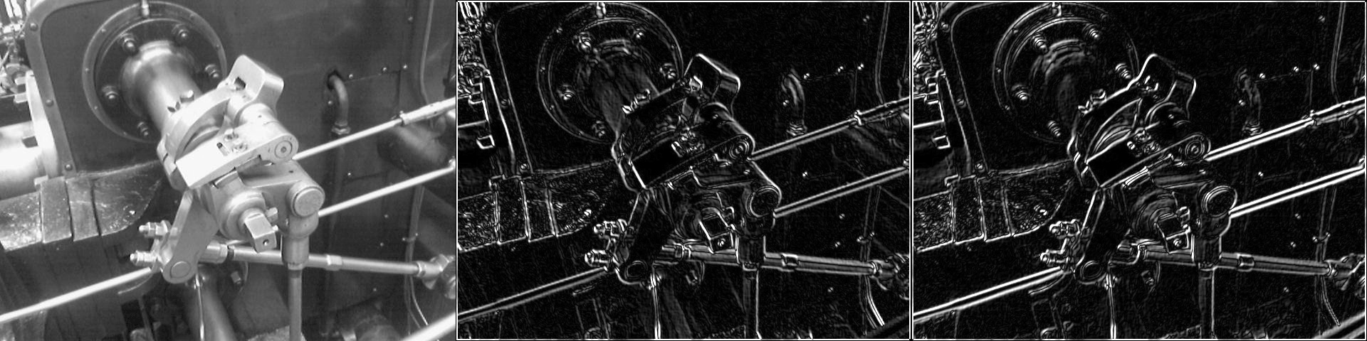 긴 흰색 봉 부분을 보면 확실히 구별 가능한데, 해당 부분은 135도 방향의 Edge가 존재하는 곳이다. 따라서 오른쪽 Edge 검출 결과를 보면 해당 부분에서 Response가 매우 큼을 확인할 수 있다. 반면, 사각 볼트 쪽을 보면 45도 방향의 Edge가 많이 존재하여 두번째 Edge 검출 결과에서 해당 부분이 높은 Response를 보임을 확인할 수 있다.
