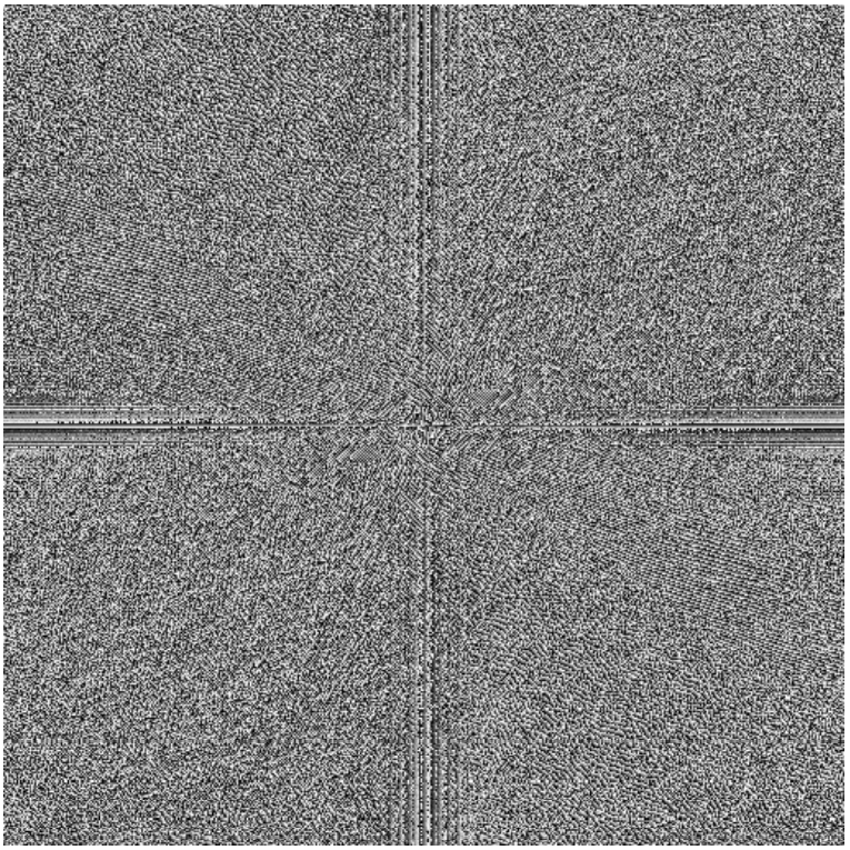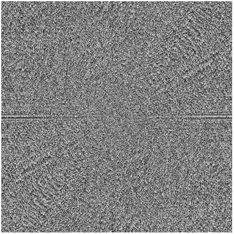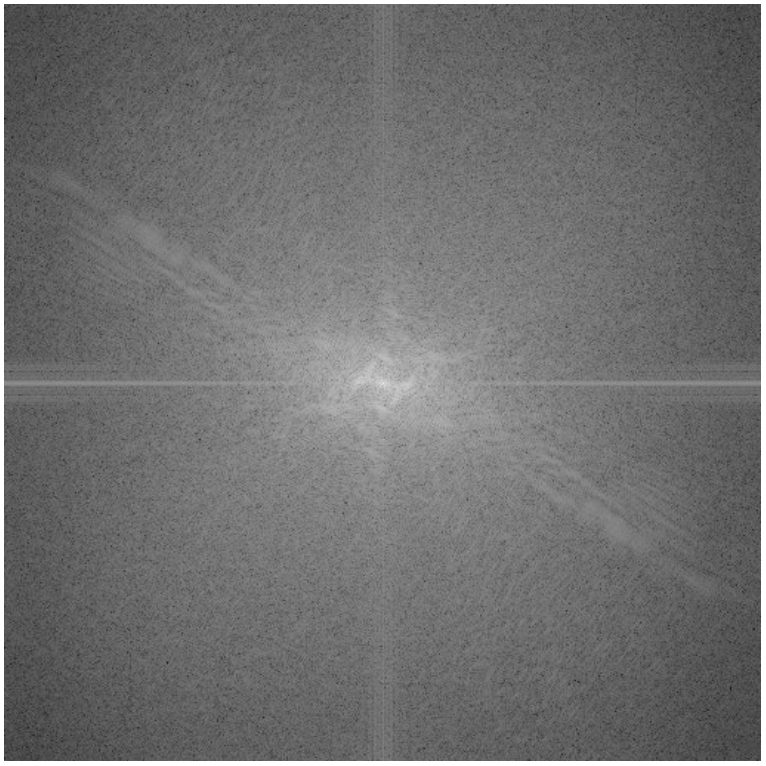 또한, 원점 외에 대각선 방향과 수직, 수평 방향으로 흰색이 꽤 존재함을 확인할 수 있다. 이는 해당 주파수를 갖는 시그널이 존재한다는 의미인데, 다음 예시에서 더 자세히 살펴보자.