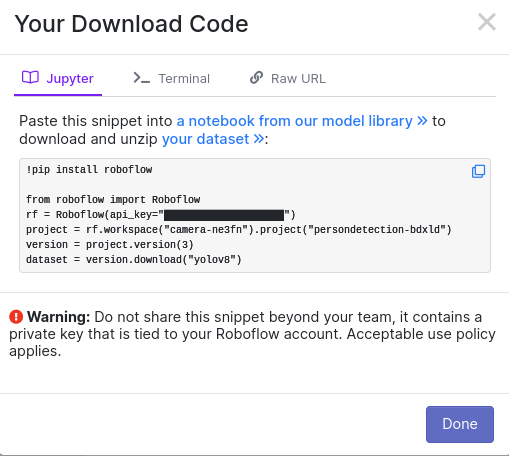 선택 완료 하였다면, 해당 Data를 학습시키는 환경에 맞춰서 Dataset을 생성하면 된다. 필자는 구글 코랩에서 학습시키기 위하여 Jupyter Version으로 생성하였다.