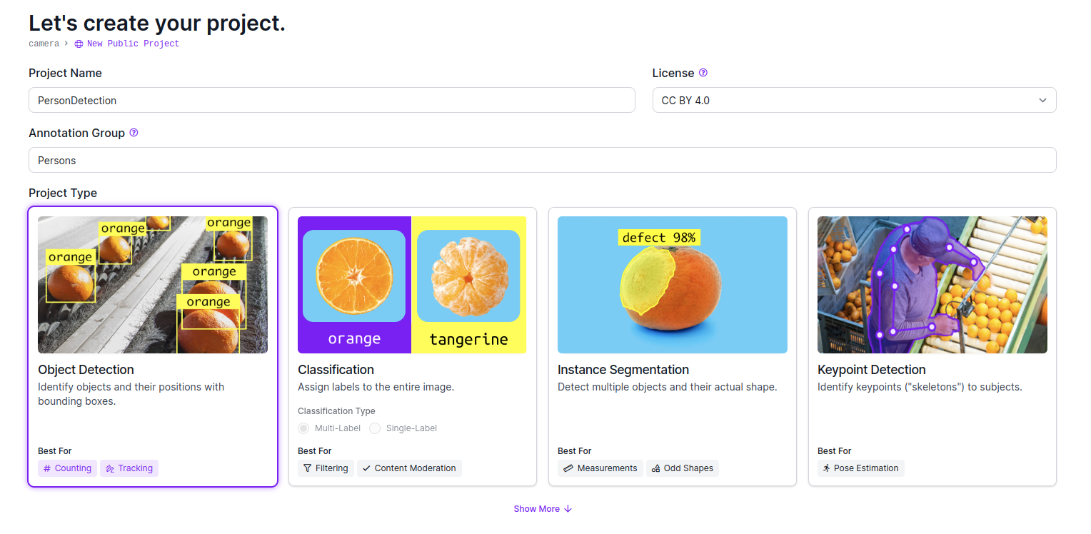 먼저 Roboflow에 계정을 등록한 뒤 새로운 프로젝트를 생성한다.