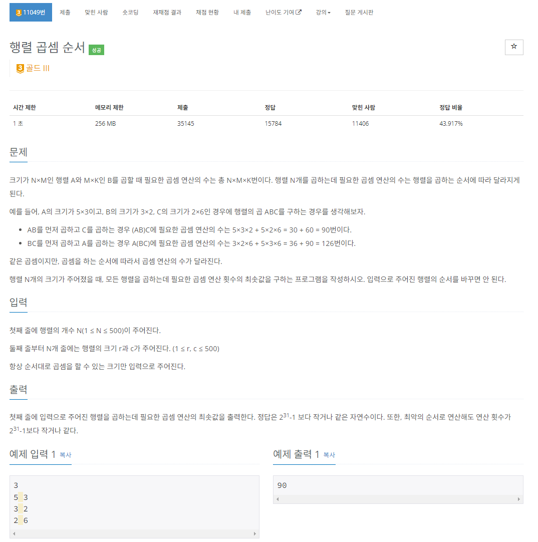 [ DP-11049 ] 행렬 곱셈 순서(C++) 본문