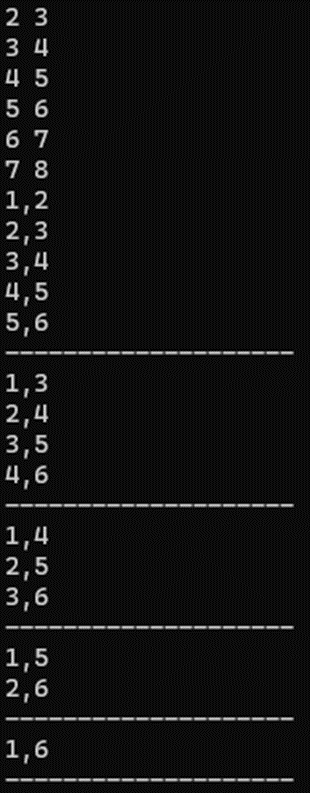 해당 수도코드를 기반으로 구현하게 된다면, 약간의 불필요한 계산이 요구된다. 이중 for문을 돌면서 접근하여 최소 연산량을 구하는 DP 테이블을 채우게 되는데, 이때의 테이블을 접근하는 Index를 출력하면 다음과 같다.