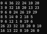 printf("%d ", DP[i][j]);