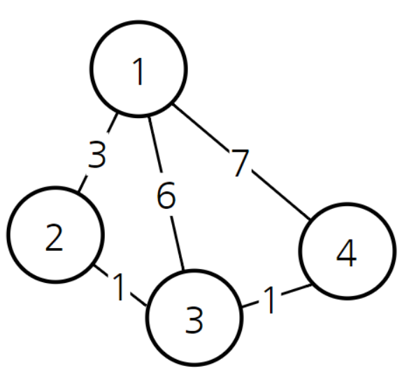 즉, 각 행의 pair 객체는 각 행에 해당하는 번호의 Node로 부터, 각 pair 객체의 첫번째 원소의 번호의 Node로 이동하는데 요구되는 비용을 의미한다. {4,7}의 경우 1번째 행에 있으니 1번 노드로 부터 4번 노드로 이동하는데 요구되는 비용이 7임을 의미한다.