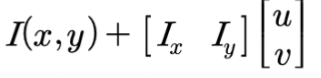 $I$는 앞서 말한 것 처럼 Intensity를 의미한다. 따라서 $(x+u, y+v)$ 위치에서의 Intensity는 $(x,y)$에서의 Intensity, x 방향으로의 기울기($\frac{\partial I}{\partial x}$)와 u의 곱, y방향으로의 기울기 ($\frac{\partial I}{\partial y}$)와 v의 곱의 합으로 근사할 수 있다. 이때, $u,v$는 $\Delta u$ 즉, Patch를 이동시킬 변화량을 의미한다. 그리고 해당 근사치를 Matrix의 곱으로 표현하면 위와 같이 표현 가능하다. 그렇구나~ 하고 넘어가자.