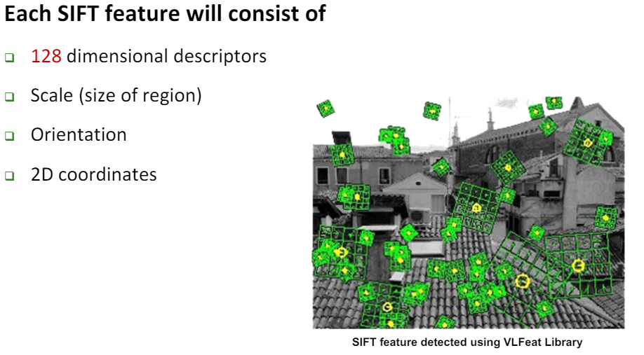 결국엔 SIFT Feature는 128차원의 Descriptors, Scale, Orientation, Location(2D Coordinates) 정보를 갖게 된다.