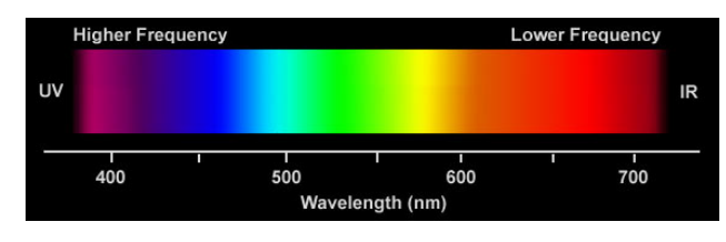 실제로 우리가 눈에 보이는 가시광선 영역은 400nm~700nm 사이에 존재한다. 이러한 전자기파는 파장과 주파수에 따라 종류가 나뉘고, 가시광선 역시 그 중 하나이다. 전자기파는 파장이 짧아질수록 주파수가 증가하고, 주파수는 광자 하나의 에너지와 비례하기 때문에 에너지가 증가해서 유해하다. 이러한 전자기파는 파장이 길수록 멀리 나가는 특징이 있다.