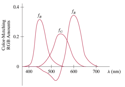 다양한 색상은 위 Color Spectrum과 같이 표현된다. 즉, 모든 색상을 포함하고 있는 스펙트럼이다. 오른쪽에 보면, R,G,B에 대한 그래프가 음수 영역에서도 존재함을 확인할 수 있다. 실제로는 음수 부분을 구현할 수 없기 때문에, 앞서 모든 색상을 표현할 수 없다고 한 것이다. 하지만, 실용적인 부분에서 보면 대부분의 색을 다 표현할 수 있는 RGB가 완벽한 Basis가 된다. 이는 추후 살펴보자.
