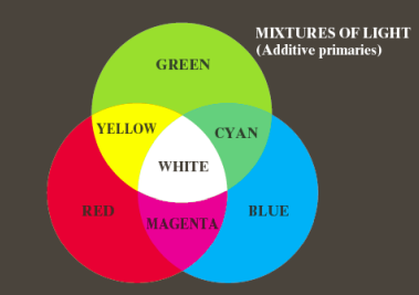 일반적으로는 R,G,B의 3색을 원색으로 하여, 원색의 Linear Combination으로 서로 다른 색상을 형성하게 된다. 2개의 원색을 섞어서 만들어지는 Yellow, Cyan, Magenta를 Secondary Color라고 한다. 3원색의 조합으로 모든 Color를 생성하짐 못하지만, 실제 필요한 대부분의 색상은 모두 만들어 낼 수 있다.