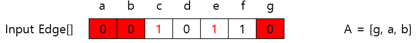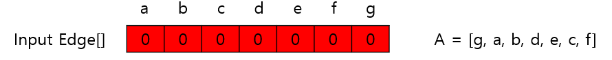 위 DAG를 기반으로 $InputEdge$ Array를 작성하면 다음과 같다.