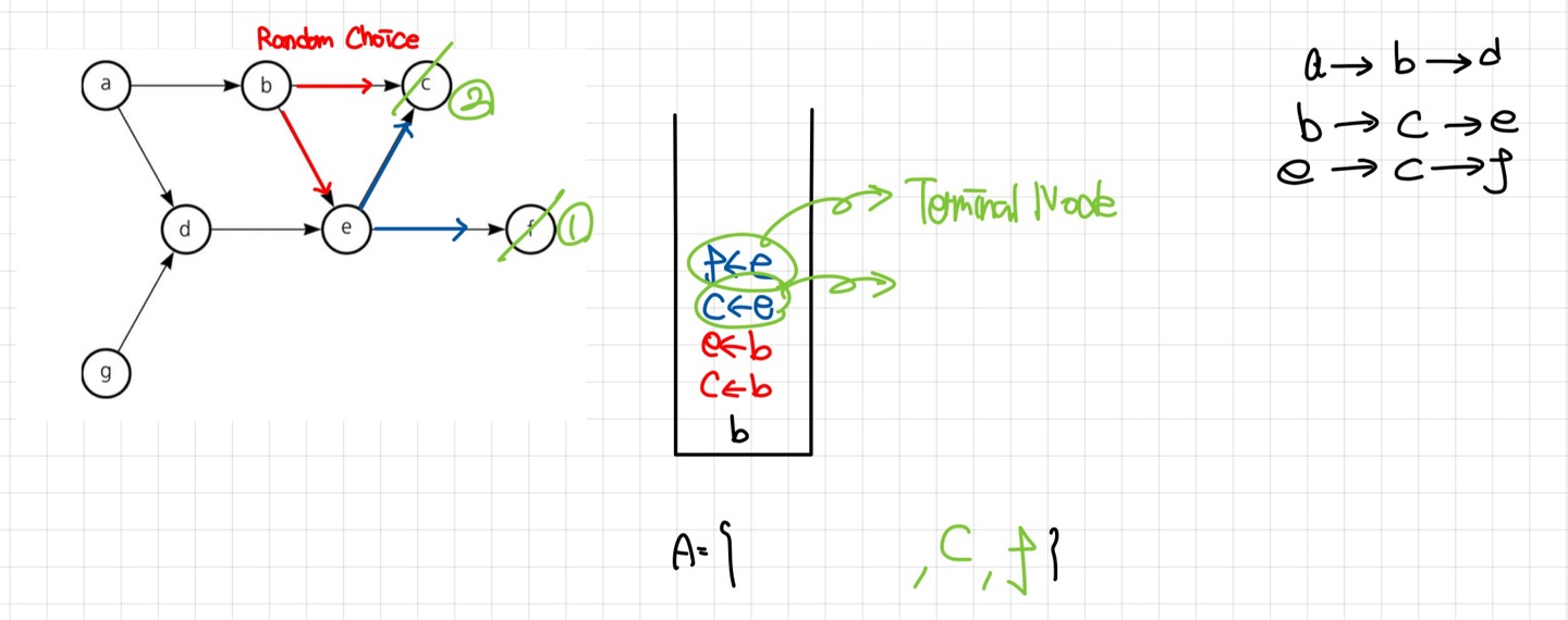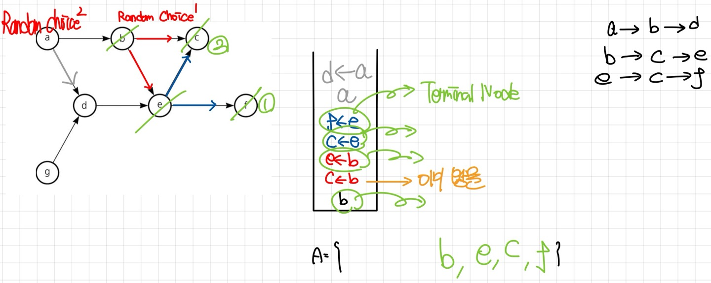 - 방문하지 않은 Node 중 Random Choice 된 Node에 대해서 DFS를 수행한다.